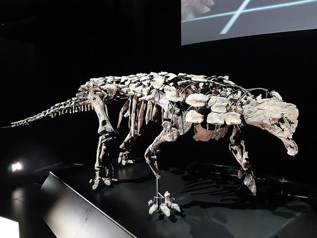 Original skeleton of the ankylosaur Europelta carbonensis from the Albian period in Ariño (Teruel) and exhibited in Dinópolis. It is one of the more than 30 non-avian dinosaurs described to date in Spain.