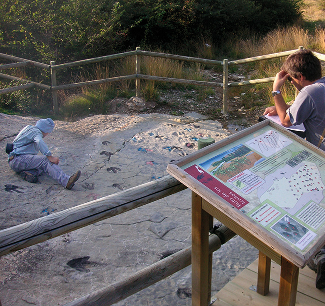 Palaeontological and museum adaptation work on a dinosaur footprint site in Miravete de la Sierra (Teruel, Spain). This village is seriously depopulated, which led to it being the subject of an advertising campaign in 2008 under the slogan «The village where nothing ever happens».