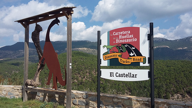 One of the stops on the Dinopaseo through El Castellar (Teruel, Spain), included in the Dinosaur Tracks Road. This municipality, with barely 60 inhabitants, has also developed the Dinosaur Route, which includes four stops adapted as on-site museums.