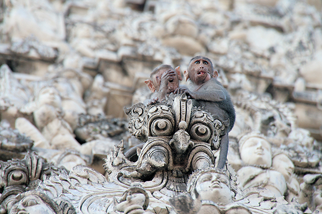 Beyond removing ectoparasites and dirt from the partner’s body, grooming triggers the activation of endorphins in the central nervous system, which relaxes the animals and facilitates the maintenance and establishment of long-term social relationships. The picture shows social grooming in capuchin monkeys.