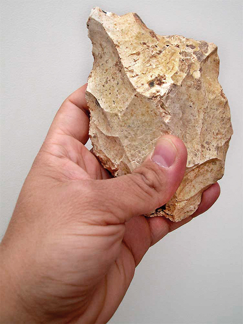 If we could determine whether early hominids learned to make tools by imitation, we could deduce whether species that made stone tools already had cumulative culture 2.6 million years ago. In the picture, a carved stone cutter.