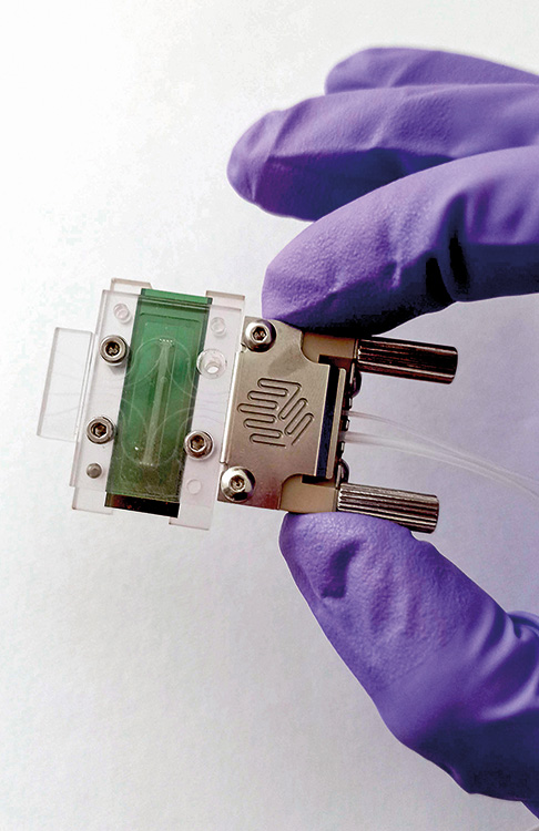 A biosensor is a compact analytical device that combines biological components, with a physical transducer to detect and quantify specific biological or chemical analytes in a sample, including proteins, pathogens, drugs, toxins, or genomic markers. The biological component acts as a selective recognition element, capturing and interacting with the analyte of interest. In the picture, an optical interferometric biosensor integrated in a hand-held cartridge, designed to detect bacteria in the blood of patients with sepsis.