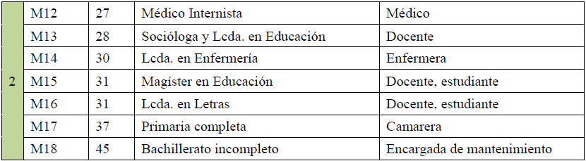 Aunque las variables edad y grado instruccional se evaluarán más adelante, estos aspectos no se tomaron en cuenta para la selección de las informantes, pues no se incluyó o excluyó alguna en consideración a tales factores.