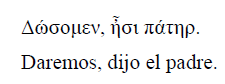 (9)Nada de esto parece posible en el caso de ἠμί, y ello da cuenta de la ausencia de enunciados similares a los de (10).