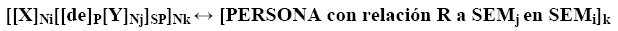 Las construcciones estudiadas se dejan analizar, entonces, como un subesquema de los compuestos N+de+N, formalizado así:
