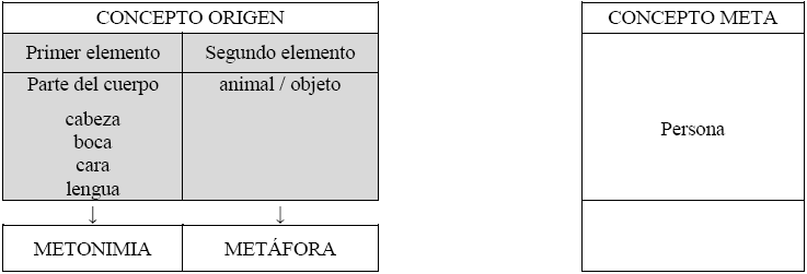 Igualmente, a partir del análisis de los procesos metafóricos (LAS PERSONAS SON ANIMALES/COSAS) y metonímicos (PARTE POR TODO) propuestos por la perspectiva cognitivista (Lakoff y Johnson, 1995), queda claro que se trata aquí de lexicalizaciones semánticas.