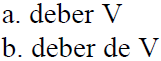 Como es bien sabido, (32a) debería indicar, normativamente, un valor de inseguridad epistémica. No obstante, muchos hablantes nativos la usan e interpretan también como una perífrasis deóntica de obligación. Esta segunda es la única interpretación que admite (32b). La pregunta, en este momento, es cómo se relacionan estos dos valores –obligación e inseguridad epistémica– con el significado de la preposición de.