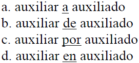 La segunda aclaración preliminar que debemos hacer se refiere a la distribución de los nexos preposicionales. Hay cuatro preposiciones que aparecen repetidamente (10), pero esto sucede solo cuando la forma del verbo auxiliado es un infinitivo.