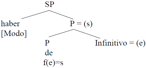 La segunda teoría implicaría que el auxiliar modal fuera en este caso él mismo una manifestación del transicionador, como en (61). No haría falta nexo preposicional porque en este caso sería el propio auxiliar el que desempeñara este papel.