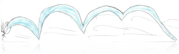 Para as crianças ribeirinhas a história desse animal vai além de uma lenda, mas se constitui num cruzamento entre o visível e o invisível (LOUREIRO, 2000). A Cobra Grande do Piriá está sempre presente na narrativa das crianças como um mito sobre o qual escutam desde que nasceram, pela boca dos avós, pais, tios, padrinhos e pessoas mais velhas da comunidade. "Lá em casa a tia sempre conta pra gente que tem uma cobra grandona aí no rio, tem vez que fica até brilhante";"É verdade que tem mina de bicho aqui, tem uma cobra muito enorme aqui" (Keila, 8 anos); "Um amigo meu me disse que ele tava sentado na cabeça do trapiche, mermo ali, era uma hora mais ou menos, buiou uma cobra assim: ela olhou pro lado, olhou pro outro e só fez mergulhá (Bambam, 11 anos). Deste modo, o rio Piriá reflete o imaginário das crianças da Vila, que se manifesta na maneira como veem e descrevem o mito da cobra grande. O desenho a seguir mostra a ideia que as crianças fazem da Cobra Grande do Piriá.