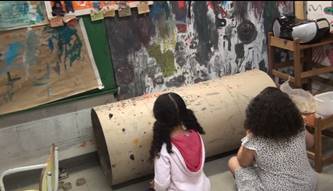 Outro ponto importante neste cenário é que nem sempre as proposições da professora são acatadas pelas crianças da mesma forma; ao invés de lidar com o rolo como um futuro farol, as crianças entram nele para brincar, transformando-o em um túnel, em um esconderijo; esta proposta foi aceita pela professora e, ao colocar cadeiras de apoio, cria condições para que as duas atividades sejam viáveis; o seu consentimento nos mostra a oportunidade que as crianças têm de explorar os objetos que as rodeiam, e ampliar as possibilidades de conhecimento.