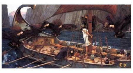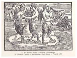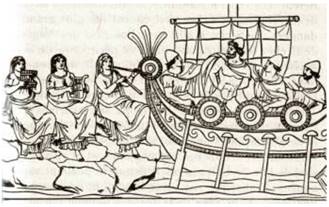 Na Odisseia conta-se que Ulisses, obrigado a passar com seu navio diante das Sereias e advertido por Circe (uma feiticeira) sobre esse evento, tapou os ouvidos de todos os seus companheiros com cera e fez-se amarrar num mastro pelos pés e pelas mãos. Ademais, proibiu que o soltassem caso ouvissem a voz das Sereias e ele exprimisse o desejo de parar. Tais precauções não foram vãs. Mal ouviu aquelas encantadoras criaturas, suas doces palavras, suas promessas sedutoras, Ulisses, apesar do conselho que recebera e da certeza de perecer, intimou seus companheiros a soltá-lo, o que, felizmente, eles evitaram fazer.