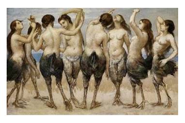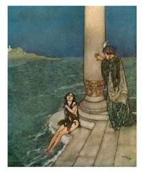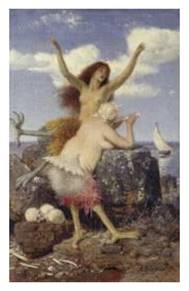 Que razão havia para dar às filhas de Achelous penas e garras, mas deixando-as ainda com o rosto que tinham? Teria sido porque estavam com Prosérpina, quando ela colhia aquelas flores fatídicas? Eram suas amigas queridas, as Sirenes, feitas para cantar, e elas a seguiram por todas as terras, em vão, e chegaram até o oceano e rezaram para conseguir encontrá-la ali, pediram asas para sobrevoá-lo, e planaram sobre as águas. Os deuses foram bondosos e lhes deram plumagens douradas, e permitiram que conservassem suas adoráveis vozes, tão agradáveis aos ouvidos dos homens, e também suas feições humanas (OVÍDIO, 2003, p.108).