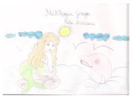 As crianças produziram uma série de desenhos, todos eles, seguindo essa última forma de expressão de uma Sereia, com cauda de peixe. Vamos olhar alguns deles: