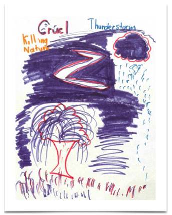 "I think nature has a cruel part, well not that it is cruel to us but like natural disasters, the ones we were just looking at, the one where the water is coming, splashing cars down, like thunder storms."