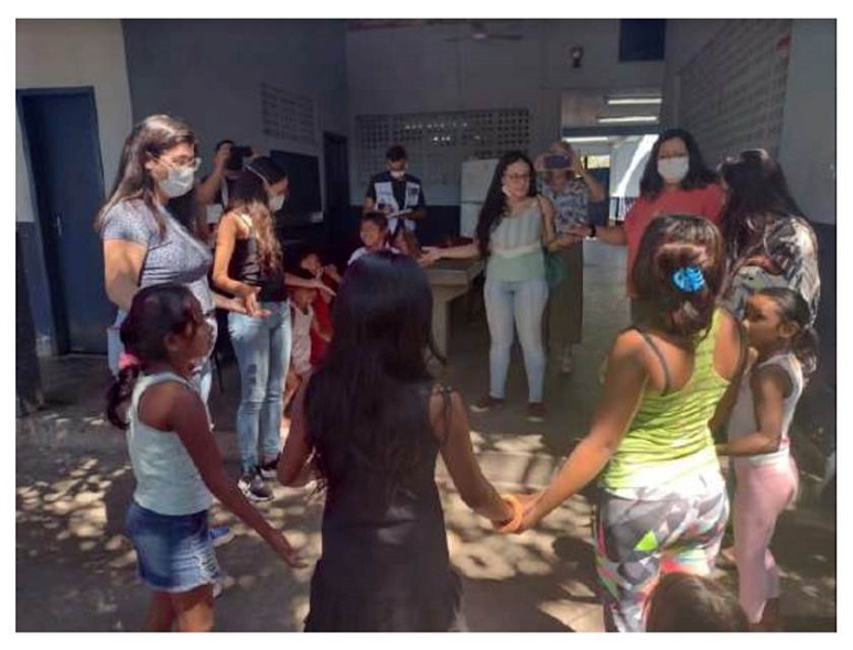 Os participantes do grupo marcaram no endereço fornecido pela equipe do Centro de Referência de Assistência Social (CRAS) que mediaram nosso contato. Após uma longa viagem de carro, vindas de pontos distintos da região metropolitana do Rio de Janeiro (Mesquita, Nova Iguaçu e Rio de Janeiro) chegamos em Parque Estoril, local que as crianças Warao se encontravam. Cabe destacar que as famílias que chegaram em Nova Iguaçu foram acolhidas na Escola Municipal Daniel Nogueira Ramalho. Essa escola foi desativada mediante a inauguração de um novo prédio escolar municipal próximo às redondezas.