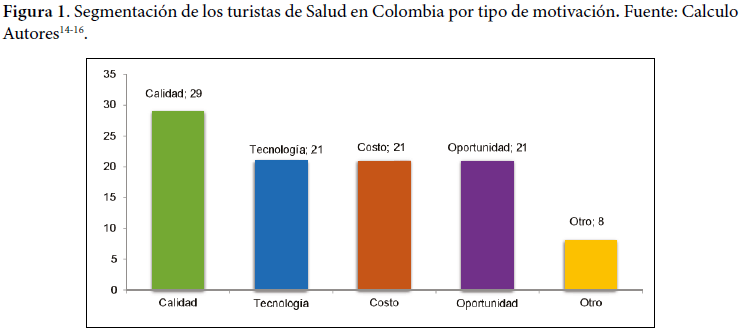 Colombia hace parte de los cinco principales destinos de bienestar en América Latina junto con México, Argentina, Brasil y Puerto Rico. Dentro de dicho grupo solo posee el 13% de Spas con respecto a México, que es el primer destino. En el país existen 41 instituciones clasificadas para realizar procedimientos complejos, localizadas especialmente en Bogotá, Medellín, Cali, Bucaramanga y Barranquilla5,15,20, con datos de incremento en un 40% del porcentaje de huéspedes extranjeros no residentes, en hoteles por concepto de turismo en salud y bienestar en el primer cuatrimestre del 2012 comparado con el año 20116,14,18,25-27.