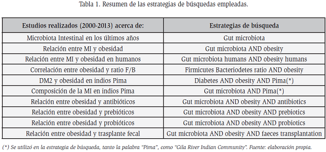 Para la búsqueda de evidencias científicas respecto a la comunidad de PI, la estrategia fue diseñada tanto con la palabra “Pima”, como “Gila River Indian Community”. Respecto al trasplante fecal, la estrategia de búsqueda se realizó con el nombre de faeces transplantation, anteriormente se probaron diferentes estrategias; “fecal transplant”, “feces transplantation” que no dieron resultados.