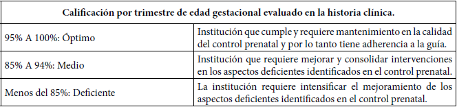 El porcentaje de adherencia a las guías de control prenatal se estableció con base en los niveles definidos en la Tabla 2.