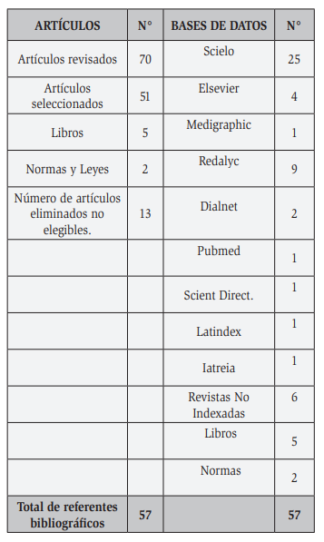 La investigación con enfoque cualitativo, basado en el análisis documental específicamente de lupus eritematoso. Se hizo búsqueda en bases bibliográficas como Scielo, Elsevier, Pubmed, Latindex, Redalyc, Mediagraphics, Dialnet, utilizando descriptores de salud para la búsqueda como: enfermedades crónicas no trasmisibles, adherencia al tratamiento; Nefritis Lúpica; calidad de vida; atención al paciente; integralidad de la salud, cuidado integrales, salud pública. Para el desarrollo de pesquisa, se realizó en etapas de la siguiente forma. En la primera fase; recopilación de datos a través de exploración en base de datos incluyendo los de Nefro red del Caribe, se ejecutó durante el primer semestre del 2015 (enero a abril), artículos publicados entre los años 2005 y 2014, informes científicos de 2015, libros de 1953 hasta 1994, y normas de 2006 al 2007 escritos en español, inglés y portugués, identificando 70 estudios referentes a la temática; en una segunda fase, se clasificaron los estudios basados en categorías, los cuales se incluyeron 60 saberes con los que se adelantó la revisión; en la tercera fase, se realiza lectura y síntesis, procediendo así a la organización de esta, según categorías y finalmente 57 estudios aportaron al cumplimiento del objetivo. En la tabla 1 se muestra el proceso de revisión sistemática de investigaciones sobre la adherencia al tratamiento que se realizó para llevar a cabo el estudio.