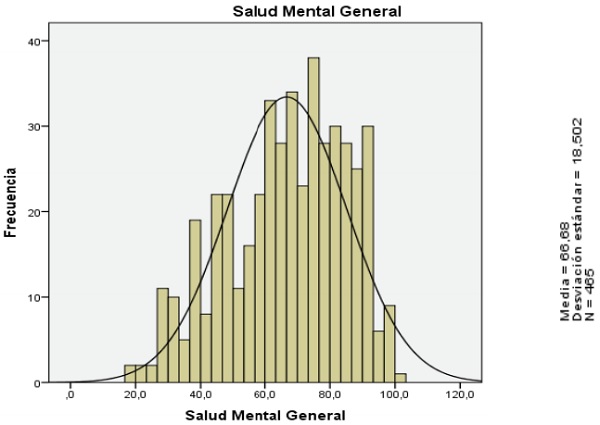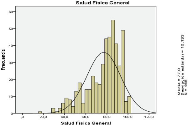 En cuanto a la salud física general y mental en estudiantes universitarios, se observa que la salud física se presenta con mejores indicadores que la salud mental. En salud física general existe una media de 77 y una desviación estándar de 16.133 y en cuanto a la salud mental general tiene una media de 66.68 y una desviación estándar de 18.502.