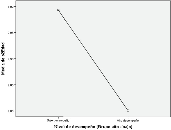 Por último, se observa que la opinión de los estudiantes con respecto al nivel de desempeño está relacionada con la edad; entre más jóvenes los estudiantes, el nivel de desempeño es mejor y entre más adultos menor nivel de desempeño presentan (Figura 3 y Tabla 3).