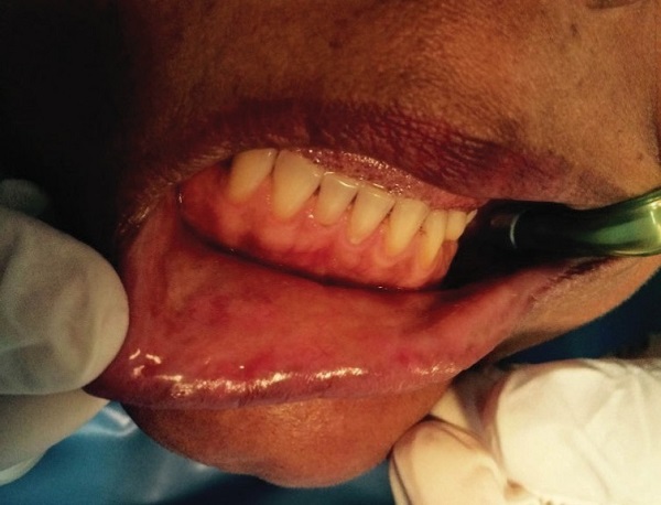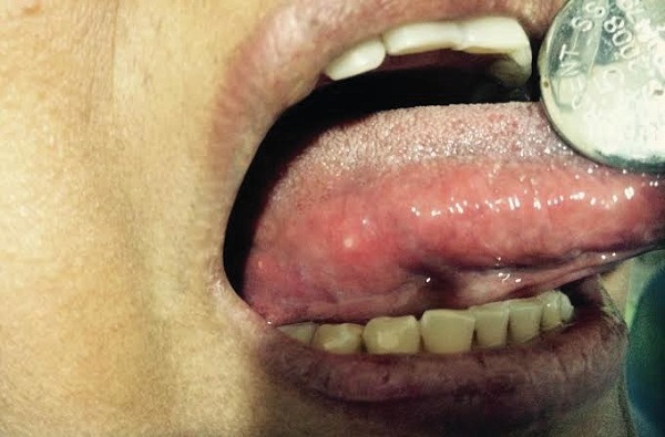 El reporte de los exámenes paraclínicos ordenados para anticuerpos antinucleares, con el fin de determinar enfermedades autoinmunes, fue negativo. Pasados 30 días aproximadamente de haber terminado el esquema instaurado, la paciente manifiesta nuevamente el inicio de lesiones aftosas dolorosas de menor diámetro en cara ventral de lengua y piso de boca (Figura 1), por lo cual se instaura un segundo esquema de corticoides sistémicos y en orabase en iguales concentraciones respecto al primer esquema con el fin de controlar la recidiva. Se observa a los pocos días mejoría con resolución total de las lesiones (Figuras 2 y 3).