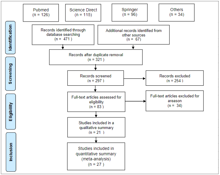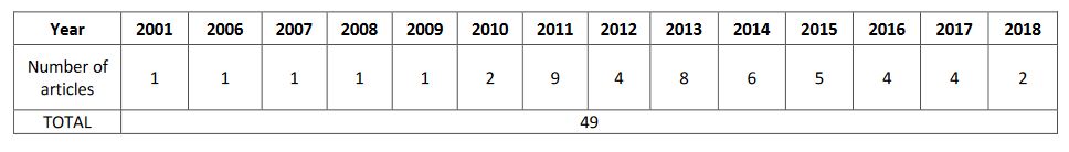 Five hundred and thirty-eight potential studies were identified, which were organized and filed in folders with the name of the database where they were found. Four hundred and eighty-nine studies were excluded, of which 347 did not address the required theme, 97 were not available in full text and 45 did not belong to the period selected. Once the methodological quality was assessed, 49 research papers met the requirements to accomplish the objective. Figure 1 shows the systematic review process that was realized to carry through the research.