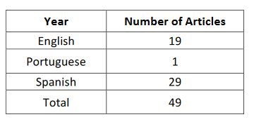 As for the systematic review conducted, the distribution of scientific production on beliefs and practices regarding diabetes is presented in Tables 1 and 2, according to year of publication and language.