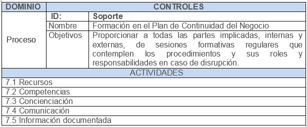 Aquí se expresa la combinación de los modelos, mediante la definición de la documentación requerida para el modelo de Continuidad del Negocio del caso de estudio, que se deriva a partir de los resultados de la integración. Naturalmente, cada documento tiene un detalle que integra el contenido genérico de COBIT 5 y los específicos de ISO 22301 e ISO 27001, según sea el caso. Como evidencia, en la Tabla VII se muestra la estructura del documento de Capacitación para Continuidad del Negocio, que se deriva de la integración de DSS4.06 de COBIT y las Actividades (subcláusulas) 7.1, 7.2 y 7.3 de ISO 22301. El contenido final corresponde a la redacción detallada, que sin mayor inconveniente aprobaría el proceso de chequeo documental de una auditoria de cumplimiento de ISO 22301.