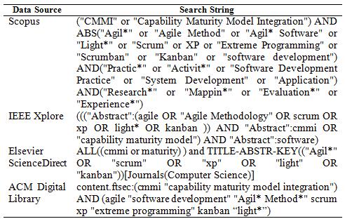 Exclusion criteria: Duplicated papers were excluded and the search scope was limited to the following publication types: Journals, Conferences, Magazines, Technical Reports and Books. In addition, we excluded the papers that only show the results of adopting agile practices without considering CMMI contexts