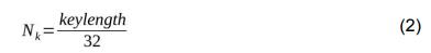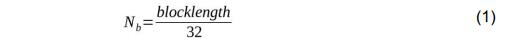 The number of rounds Nr depends on the values of Nband Nk as presented in the table 1. (Error 11: La referencia: Nk está ligada a un elemento que ya no existe)
