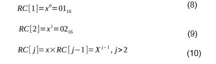 where RC[i] represents an element in GF (28) with value x(i-1) such that: