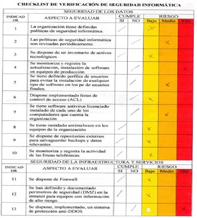 Se realizó un check list de verificación, en donde se averiguó la existencia de controles establecidos para mitigar ataques en contra de la seguridad informática.