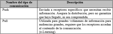 Dentro de la administración de una empresa, uno de los factores que se requiere para su éxito es la comunicación. Los tipos de comunicación descritos en PMBOOKv también se pueden adecuar a diferentes organizaciones como pueden ser las educativas, mientras más personas estén en una organización es importante tener los medios de comunicación adecuados para evitar conflictos y obtener mejores resultados, es el caso del involucramiento de los padres de familia en las tareas de los estudiantes. PMBOOK hace referencia a tres tipos de comunicación que se requieren para mantener en contacto a una organización, la Tabla 1 muestra los tipos de comunicación establecidos por el PMBOOK.