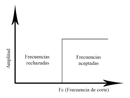 Como se puede apreciar en la figura 9, la forma en que actúa un filtro pasa alto ideal, dejando pasar solo aquellas frecuencias que están por encima de la frecuencia de corte.
