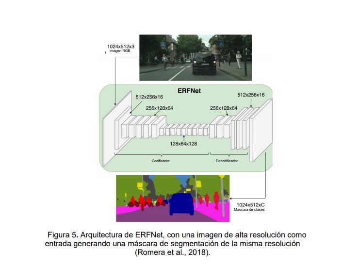 En (Paszke et al., 2016), se propone una FCN denominada Red eficiente (Enet por sus siglas en ingles), la cual tiene una arquitectura autocodificada de 23 capas. El módulo codificador se compone de 20 capas de conexiones residuales y convoluciones factorizadas que aumentan la eficiencia, mientras se mantiene un desempeño aceptable.