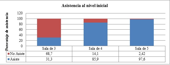 Desde la modificación del Plan Nacional de Educación Inicial por la Ley 27045 a principios de 2015, la educación inicial se considera un derecho a partir de los 45 días hasta los 5 años de edad, y se constituye como obligatorio el cursado de los dos últimos años, es decir, sala de 4 y de 5, para niños y niñas que residan en el país. Asimismo, la ley establece el objetivo de garantizar los servicios a partir de la sala de 3. Esto implica que la educación inicial es, al menos en el plano normativo, un derecho universal. Sin embargo, el nivel de asistencia a estos establecimientos varía significativamente con la edad.
