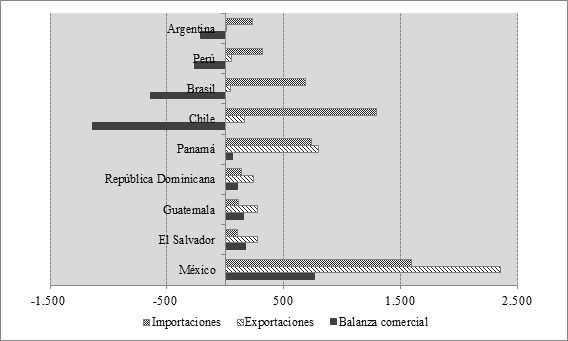 A partir del análisis de la balanza comercial de los países de América Latina se pueden identificar tres perfiles principales: países que funcionan principalmente como plataformas de re-exportación de vestimenta del sudeste asiático hacia Estados Unidos (México y Panamá); países de menor tamaño relativo que son plataformas de producción para multinacionales norteamericanas (República Dominicana, Guatemala y El Salvador); y países con un comercio deficitario pero con una participación importante de la producción local (Brasil, Perú y Argentina, entre otros).