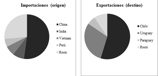 Mientras el sur asiático se mantiene a lo largo de los últimos años como principal región de origen de las importaciones, las exportaciones tienen como destino casi exclusivo los países limítrofes. Ello se corresponde con la menor calidad de las importaciones (que en los últimos años promediaron un precio de 25,55 dólares por kilo) con respecto a las exportaciones (52 dólares por kilo) (CIAI, 2017).