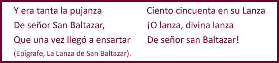 González (1999) dice que la referencia del periódico al llamarse La Lanza de San Baltazar proviene de: “No contento con ser retador, se lanzaba, alburero, a ofrecer este epígrafe malicioso, sacado de las arcas populares” (p. 126):