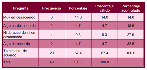 El resultado de la tabla siguiente refleja el resultado más puntual en SPSS a la misma pregunta.