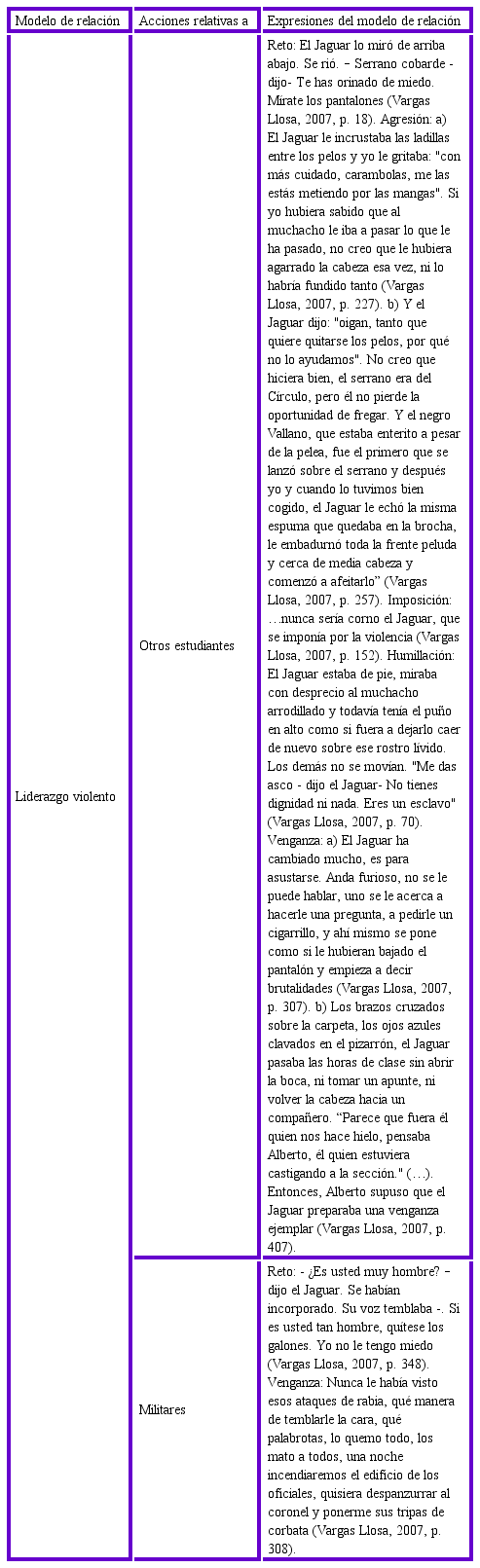 Según se puede observar en la síntesis ofrecida en el cuadro 1, las formas de relación de liderazgo violento adquieren diferentes tanto en relación con los estudiantes como con los militares.
