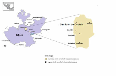Actualmente la representación de aquel mito, se reproduce en La fiesta de los tastuanes, una fiesta patronal en honor a Santiago Apóstol, que se celebra cada 25 de julio, con una duración de tres días. Se lleva a cabo en varias localidades de Jalisco, San Juan de Ocotán, Nextipac, Tonalá, Santa Ana Tepetitlán, San Francisco Ixcatán, Jocotán, Zalatitán, así como Apozol y Moyahua en Zacatecas. (Figura 1.).