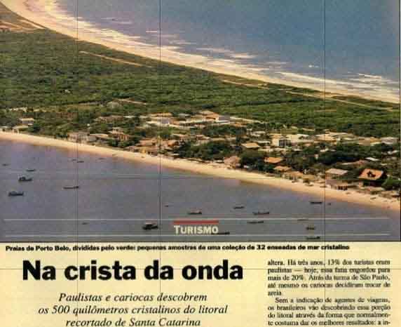 A mesma matéria expressava diferentes faces do turismo na capital catarinense, bem como uma nova construção de significados para seu espaço urbano. A cidade pequena, presa ao funcionalismo público, onde sol e mar davam conta de inseri-la no circuito turístico do litoral brasileiro e do Mercado Comum do Sul (Mercosul), passava a ser recorrentemente citada como a cidade onde tranquilidade, segurança e cosmopolitismo conviviam. Florianópolis começava a ser reinventada visando a atingir um público de alto poder aquisitivo. Assim, a publicidade divulgava o Costão do Santinho como um dos resorts “mais seletivos” do Brasil e equiparava Jurerê Internacional à Fort Lauderdale e a Boca Raton, na Flórida (RAMOS, 1997).
