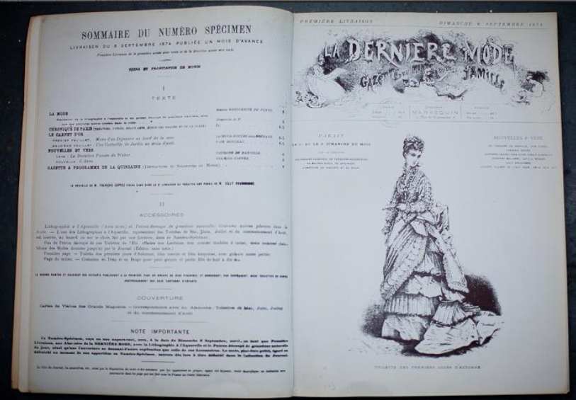 Na revista, Mallarmé trazia regras de vestuário para adequar-se ao novo. A primeira tiragem (3 mil exemplares) foi patrocinada pelo próprio poeta e contava com a ilustração em estilo gótico de Edmond Morin. Stéphane Mallarmé escreveu a maioria das matérias com pseudônimos, como “Marguerite de Ponty” (Moda e teoria da moda) e “Miss Satin” (dando notícias das modas de Paris).