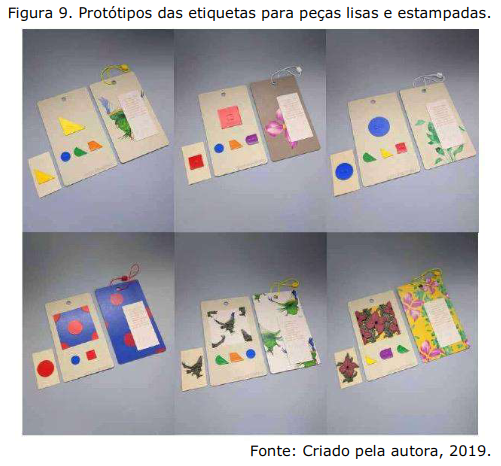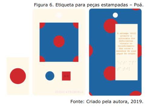 Abstract: The choice of clothes is part of the daily lives of most users. Graphic elements and colors are visual aspects that personalize items and identify styles. For the visually impaired, clothing choices and identification are not made independent. So, as an interface to help identify the patterns and colors of clothing, this study proposes to develop tactile labels with elements of surface design for the visually impaired, meeting their needs during shopping and daily use. Through an exploratory, descriptive and qualitative study, interviews were conducted with the target audience at the Associação Catarinense de Integração ao Cego - ACIC, as an analysis of the interaction of the visually impaired with clothing. The design of the prototypes was carried out in partnership with Tecnoblu, company of clothing customization products of Santa Catarina, using as a methodology the Guidance of Development Projects - GDP.