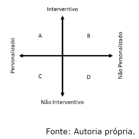 Das referências e fontes anteriormente revistas surgem claramente dois eixos na definição da natureza e dos objetivos dos produtos/serviços: (1) personalizados ou não personalizados; (2) interventivos ou não interventivos.