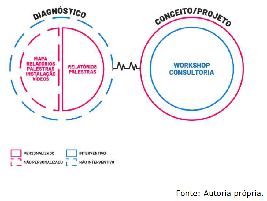 O primeiro diz respeito ao nível de personalização do produto/serviço perante o cliente, ou seja, a capacidade de adaptar os conteúdos e os processos ao briefing, problema, sector ou entidade do cliente, ou desenvolver um resultado que possa gerar dados estratégicos para diferentes sectores ou entidades. O segundo diz respeito à intervenção que o produto/serviço prevê na entidade do cliente, ou seja, se há uma articulação nos processos e nas atividades da entidade, ou se apenas são partilhados dados estratégicos. O seguinte quadro articula os dois eixos: