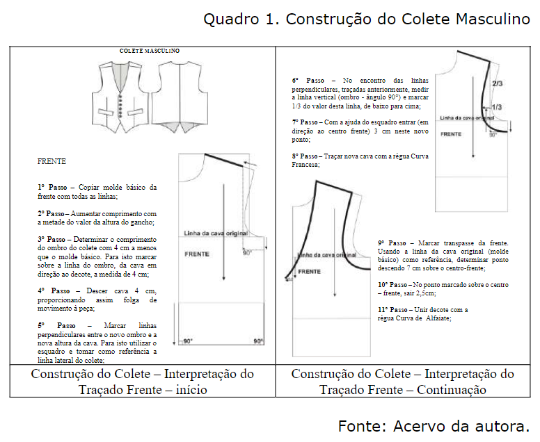 A seguir pode ser conferido parte do material didático utilizado na atividade acadêmica de modelagem masculina: